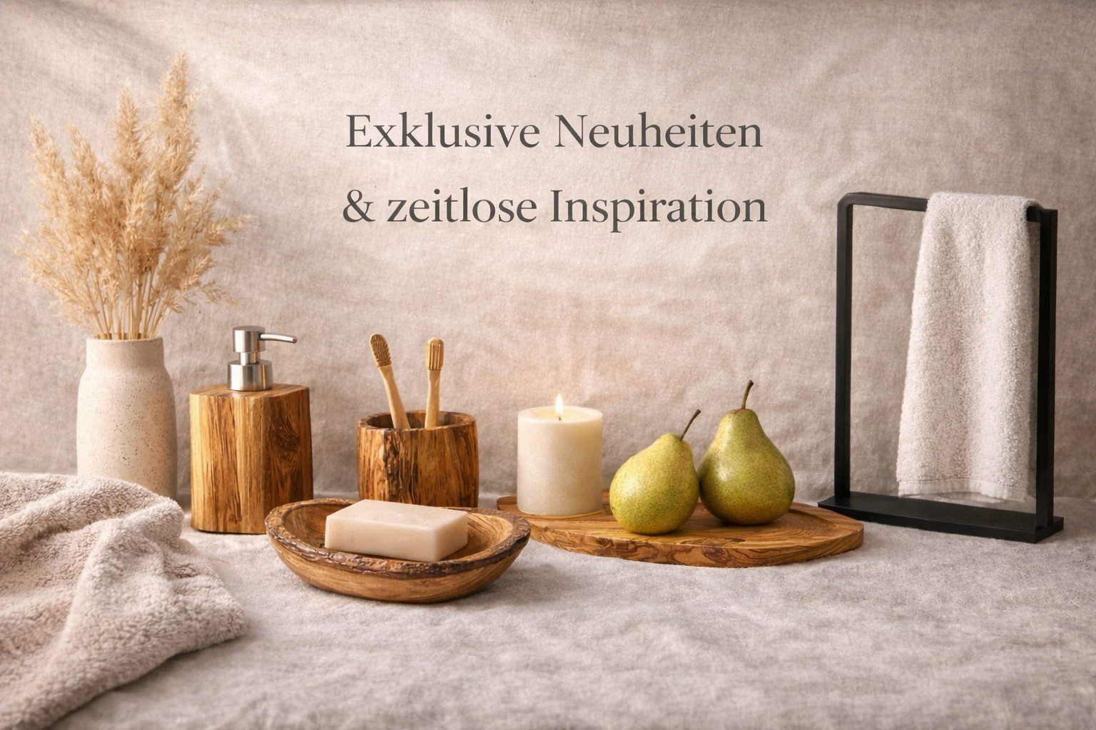 Zeitlose Badezimmer-Accessoires aus natürlichen Materialien - für ein ruhiges, stillvolles Zuhause.
