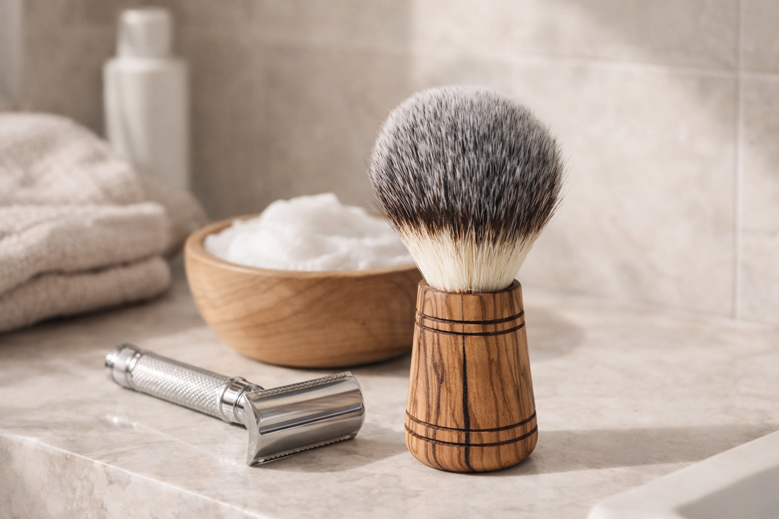Veganer Rasierpinsel aus Olivenholz