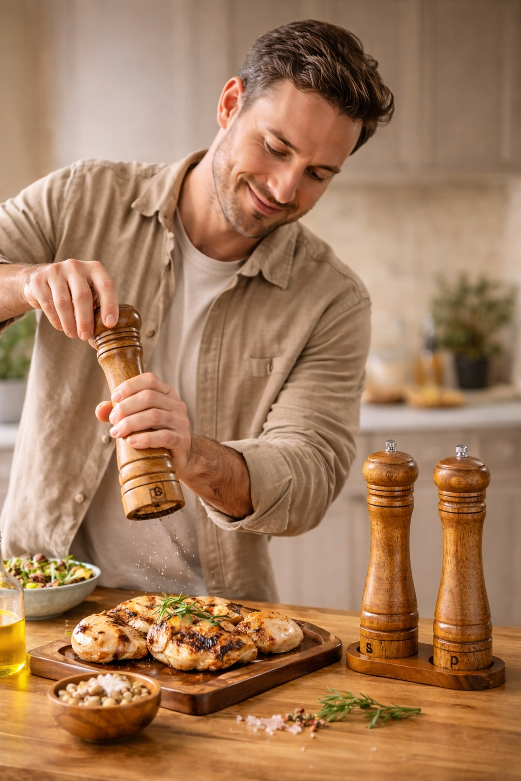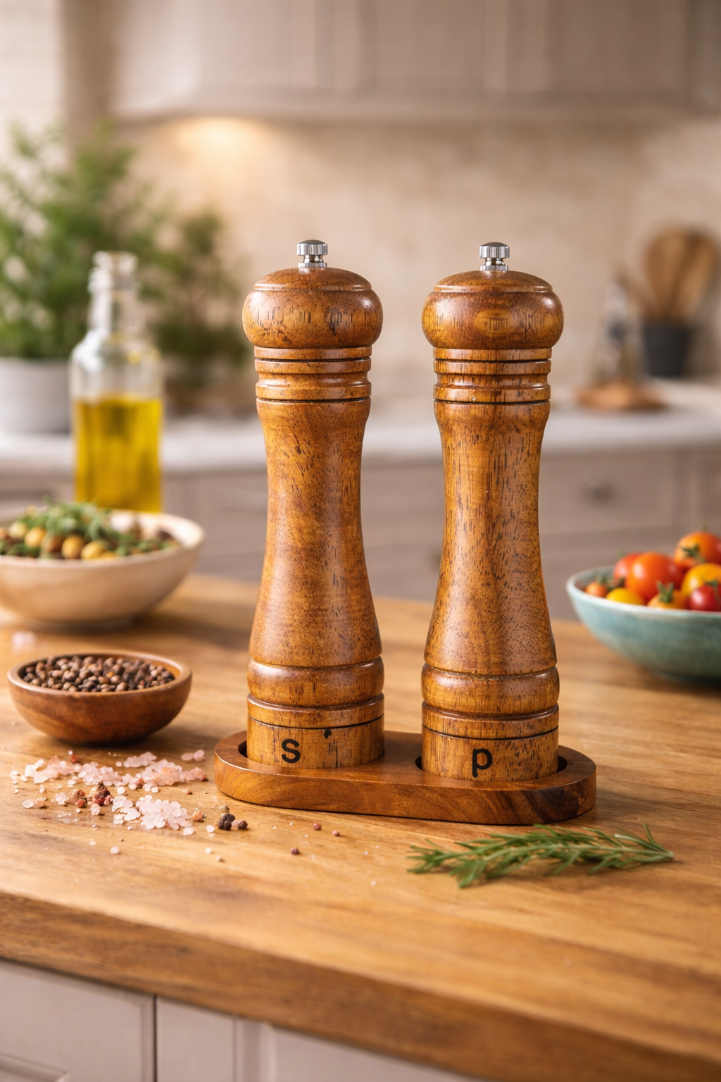 Dieses Salz- & Pfeffermühlen Set aus Massivholz bringt Wärme, Stil und Funktionalität in jede Küche. Jede Mühle liegt angenehm in der Hand und sorgt für ein gleichmässiges, manuelles Mahlerlebnis – Tag für Tag.